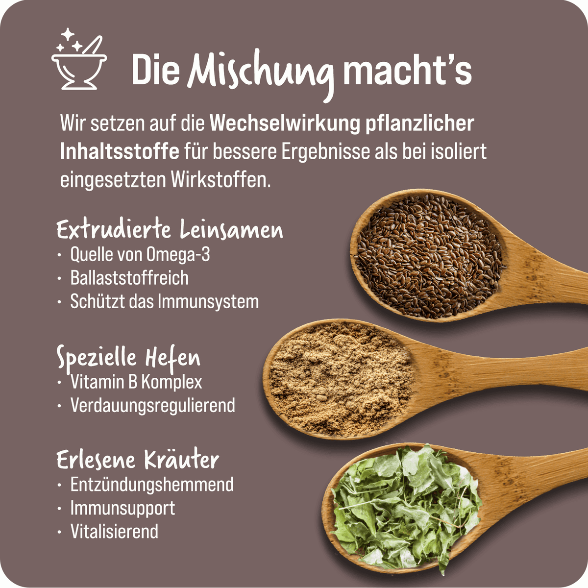 You can try our food toppings for 90 days – completely risk-free. If you don't notice any visible improvements in your dog's coat, digestion, vitality, or zest for life during this time, you'll get your money back.