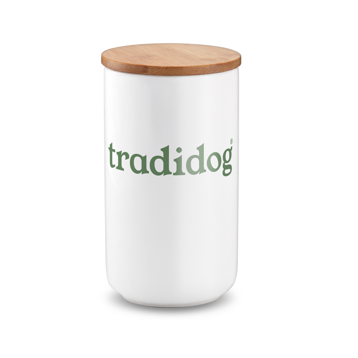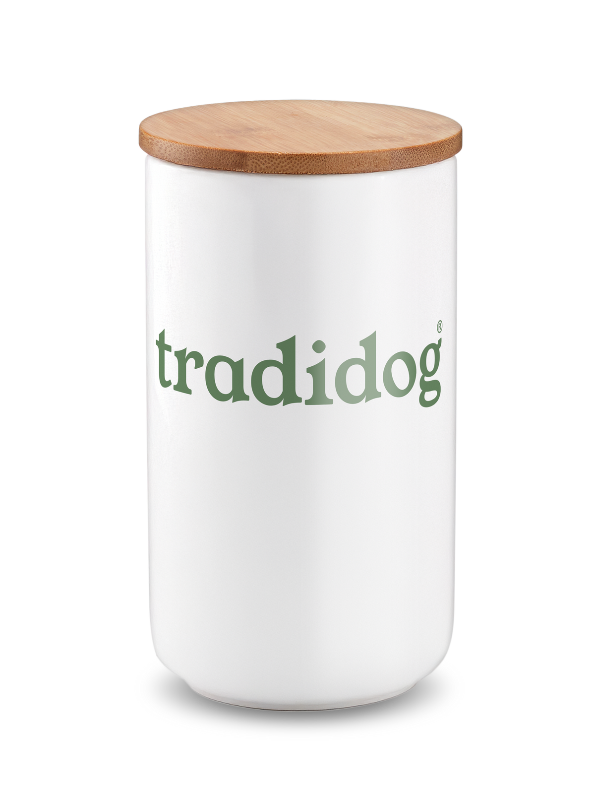 The ceramic storage container with a wooden lid reliably protects your Tradidog food topping from air, light, and moisture. This preserves the aroma, effectiveness, and quality for a long time – stylish and functional.