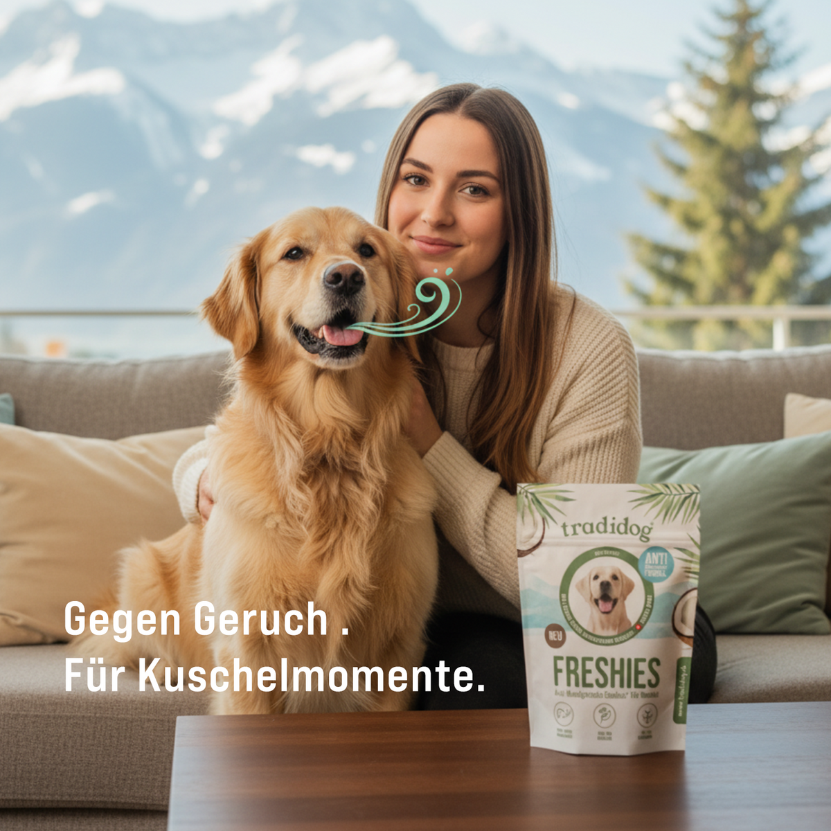 Bei Tradidog steht dein Hund im Mittelpunkt – jeden Tag, bei jeder Entscheidung. Wir produzieren alles selbst und ausschliesslich in der Schweiz, mit der Sorgfalt und Präzision, die du von Schweizer Qualität erwarten darfst. Unsere Zutaten sind rein natürlich, stammen aus kontrolliertem Anbau und werden so verarbeitet, dass ihre volle Pflanzenkraft erhalten bleibt. Denn wir glauben: Was deinem Hund wirklich hilft, kommt aus der Natur – und aus echter Verantwortung.