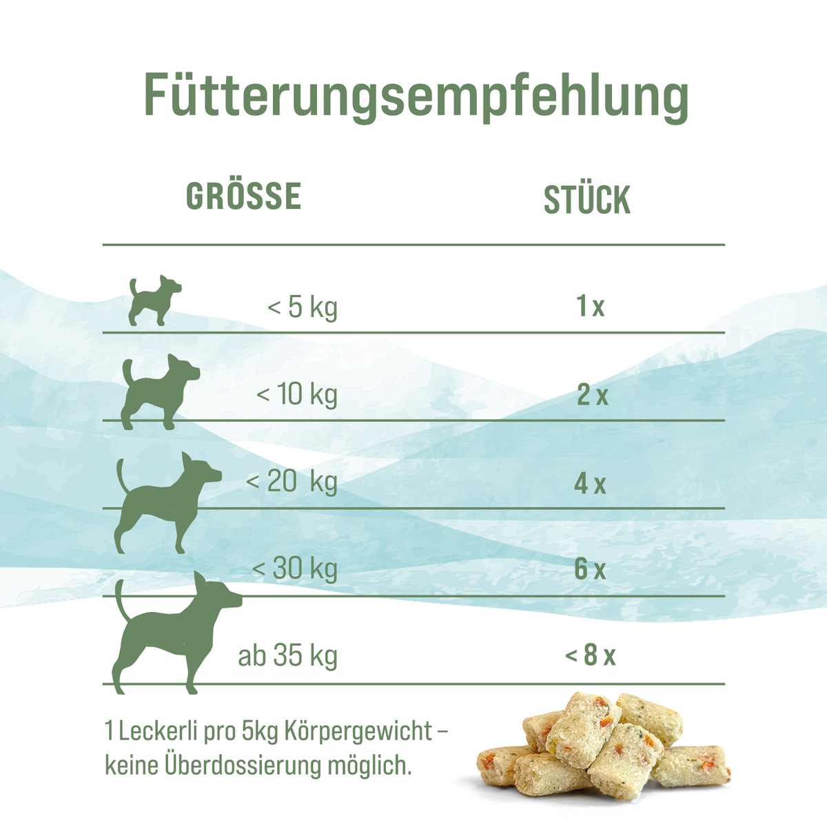Du testest unsere Futtertoppings 90 Tage lang – ganz ohne Risiko. Wenn du in dieser Zeit keine sichtbaren Verbesserungen bei Fell, Verdauung, Vitalität oder Lebensfreude bemerkst, erhältst du dein Geld zurück.