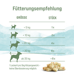 Die meisten handelsüblichen Futtermittel enthalten maximal 2g Omega-3 pro Tagesration, was nur etwa 50% des empfohlenen Bedarfs für mittelgroße Hunde entspricht. Das Tradidog Futtertopping liefert hingegen 2.46g Omega-3 pro Portion – und deckt damit den Bedarf optimal ab. So wird dein Hund gezielt mit hochwertigen Omega-3-Fettsäuren versorgt! Mehr Erfahren