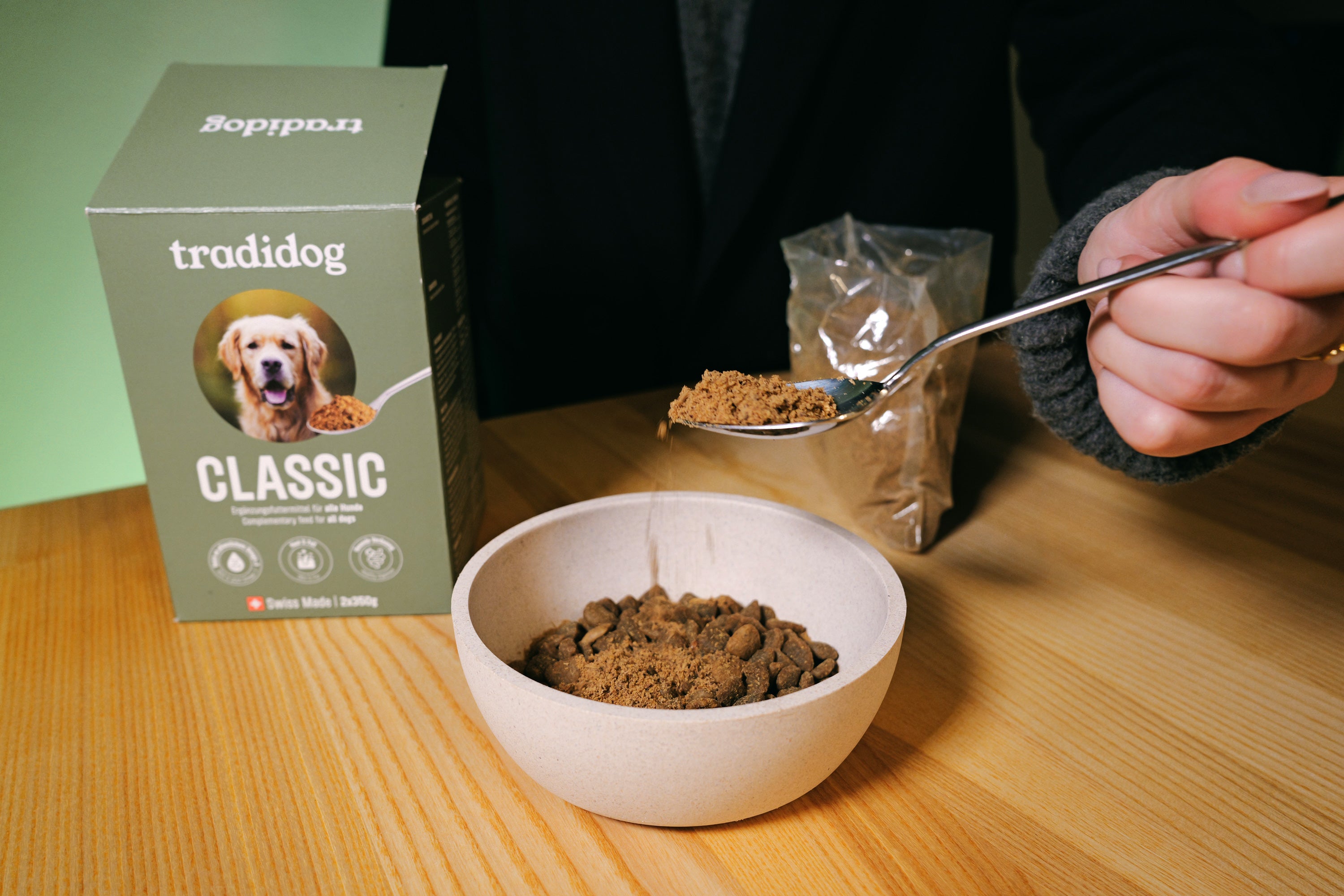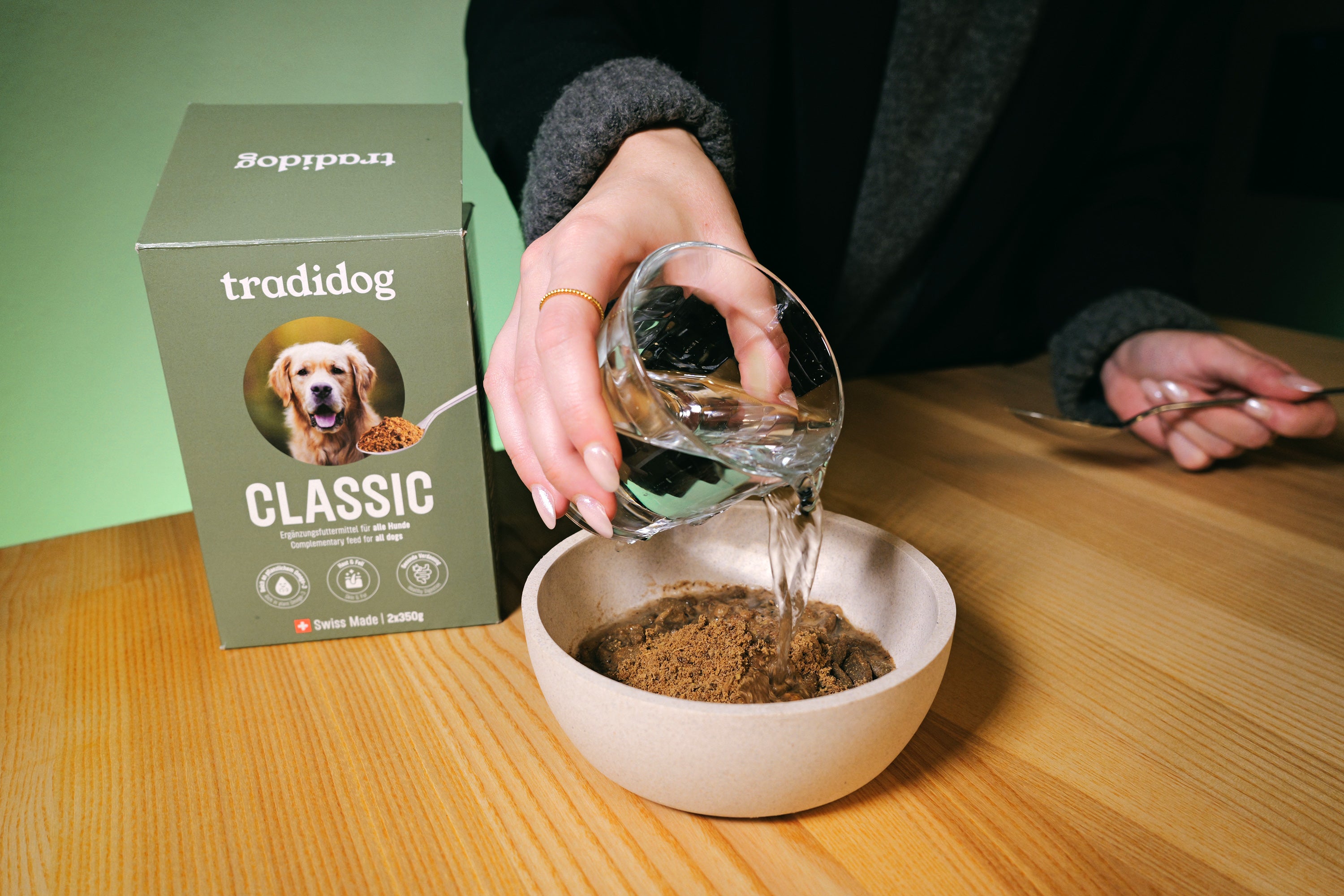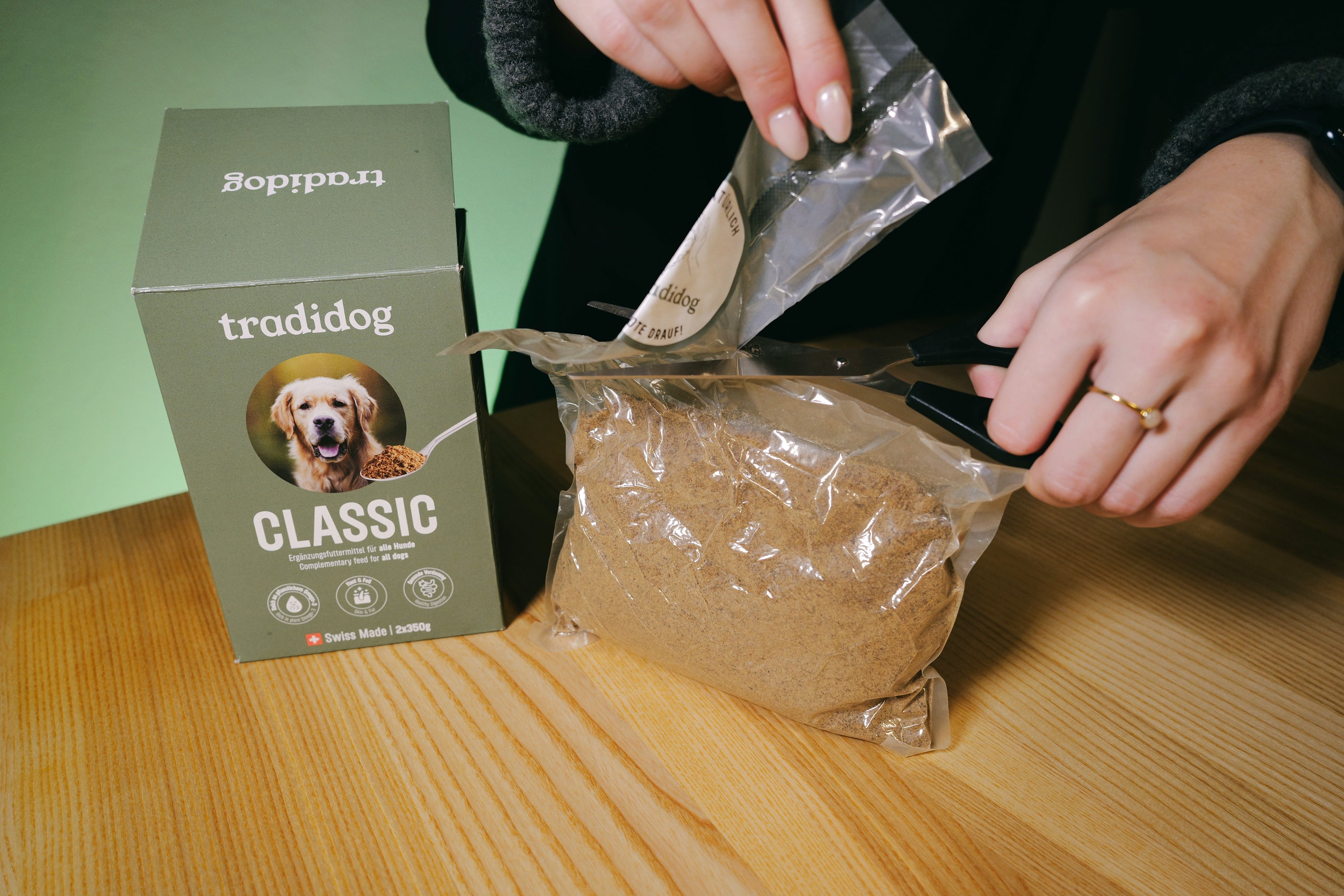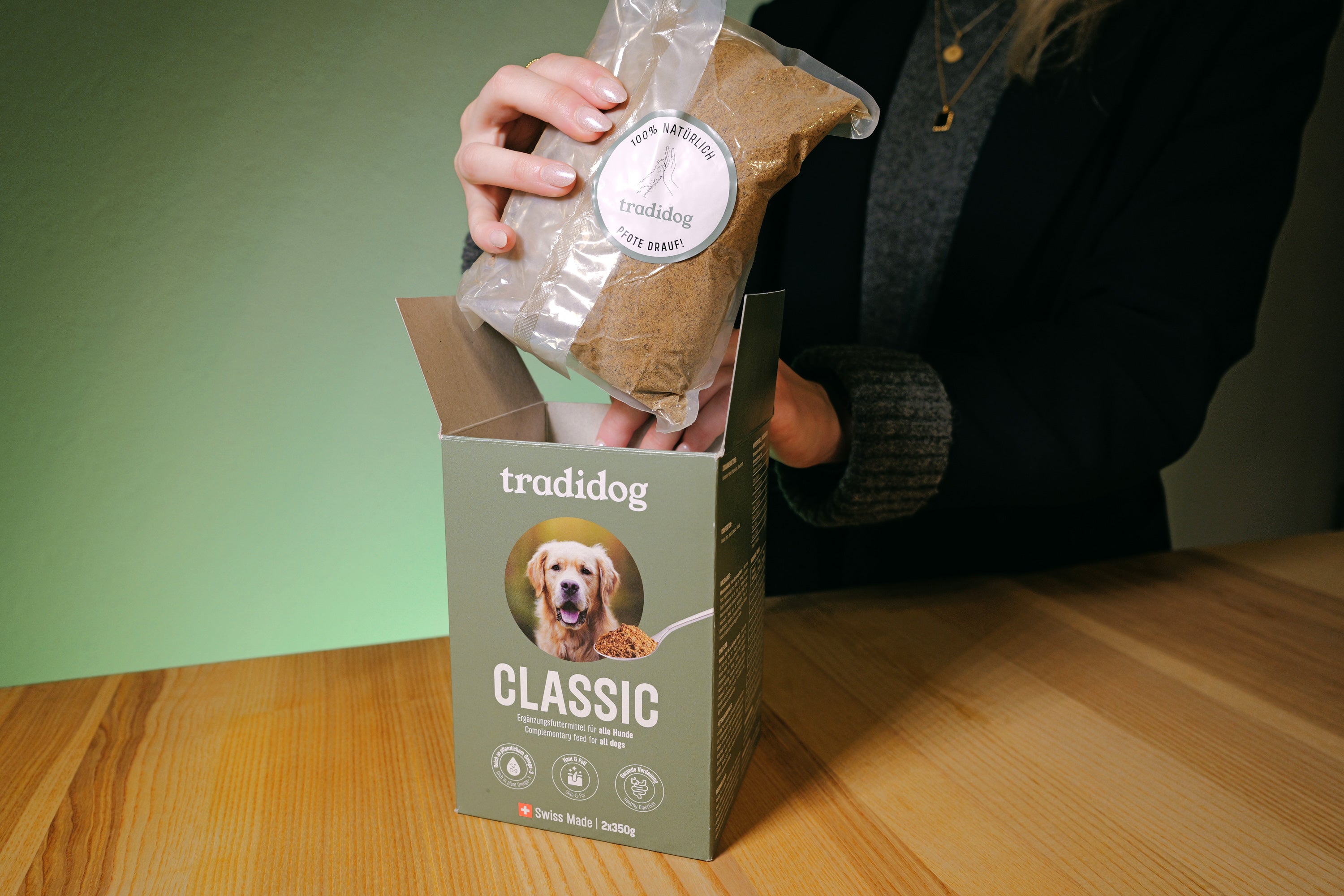 Bei Tradidog steht dein Hund im Mittelpunkt – jeden Tag, bei jeder Entscheidung. Wir produzieren alles selbst und ausschliesslich in der Schweiz, mit der Sorgfalt und Präzision, die du von Schweizer Qualität erwarten darfst. Unsere Zutaten sind rein natürlich, stammen aus kontrolliertem Anbau und werden so verarbeitet, dass ihre volle Pflanzenkraft erhalten bleibt. Denn wir glauben: Was deinem Hund wirklich hilft, kommt aus der Natur – und aus echter Verantwortung.