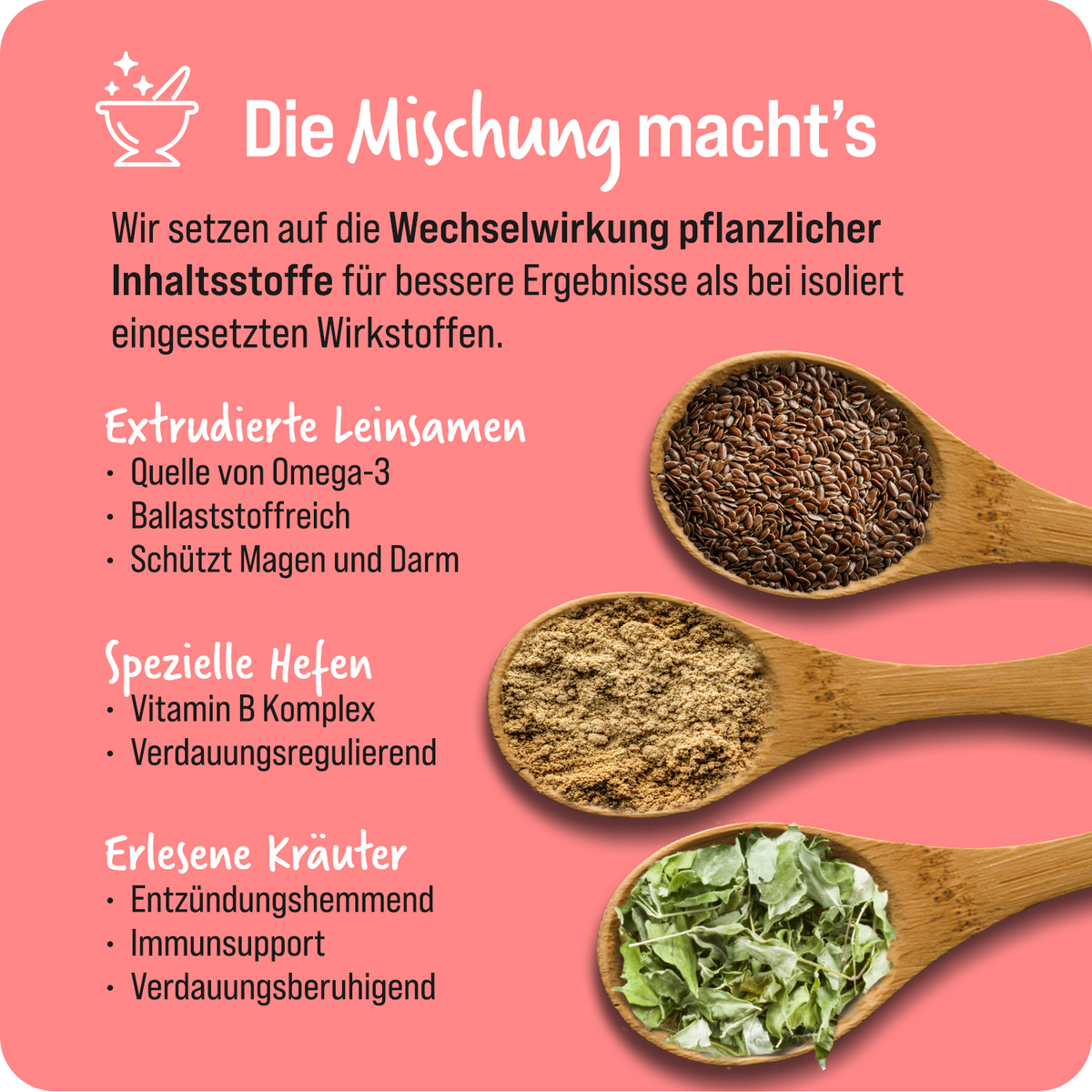 Du testest unsere Futtertoppings 90 Tage lang – ganz ohne Risiko. Wenn du in dieser Zeit keine sichtbaren Verbesserungen bei Fell, Verdauung, Vitalität oder Lebensfreude bemerkst, erhältst du dein Geld zurück.