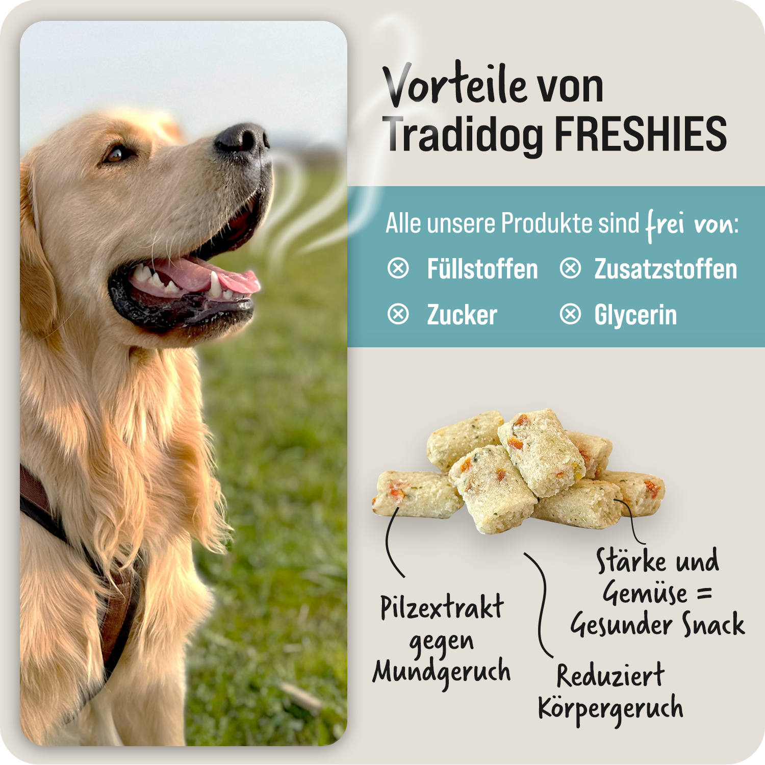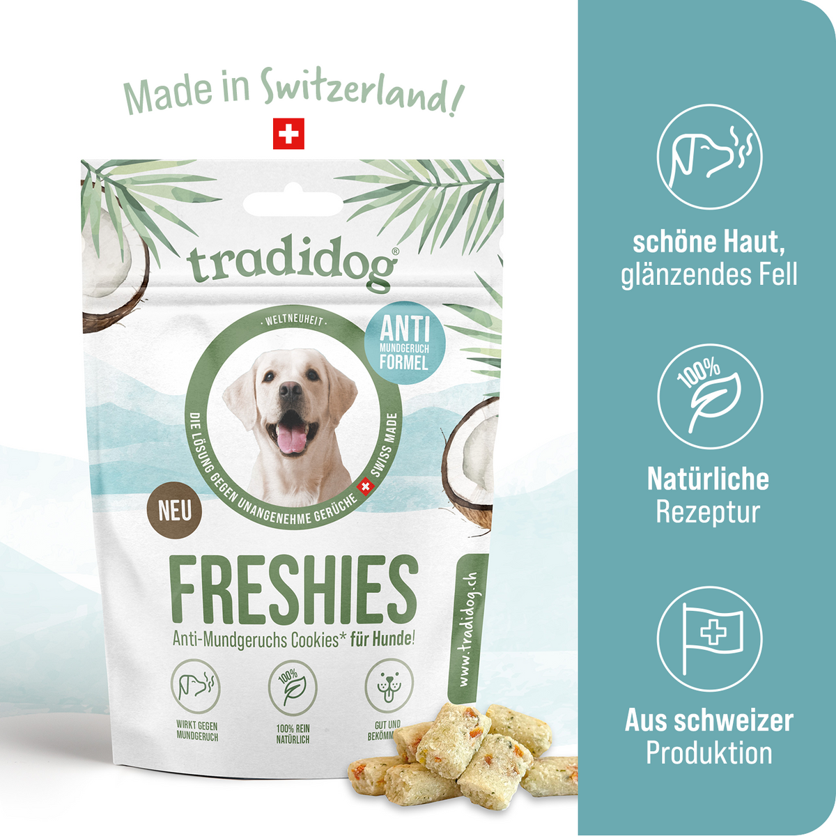 Bei Tradidog steht dein Hund im Mittelpunkt – jeden Tag, bei jeder Entscheidung. Wir produzieren alles selbst und ausschliesslich in der Schweiz, mit der Sorgfalt und Präzision, die du von Schweizer Qualität erwarten darfst. Unsere Zutaten sind rein natürlich, stammen aus kontrolliertem Anbau und werden so verarbeitet, dass ihre volle Pflanzenkraft erhalten bleibt. Denn wir glauben: Was deinem Hund wirklich hilft, kommt aus der Natur – und aus echter Verantwortung.